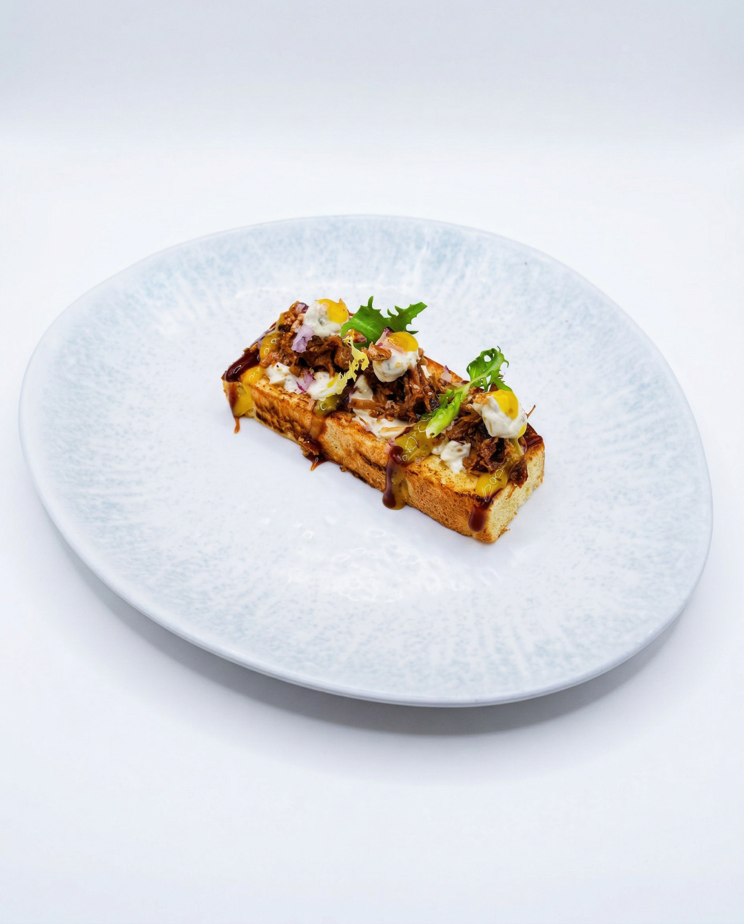 Con costela de porco a baixa temperatura, salsas barbacoa, de mel